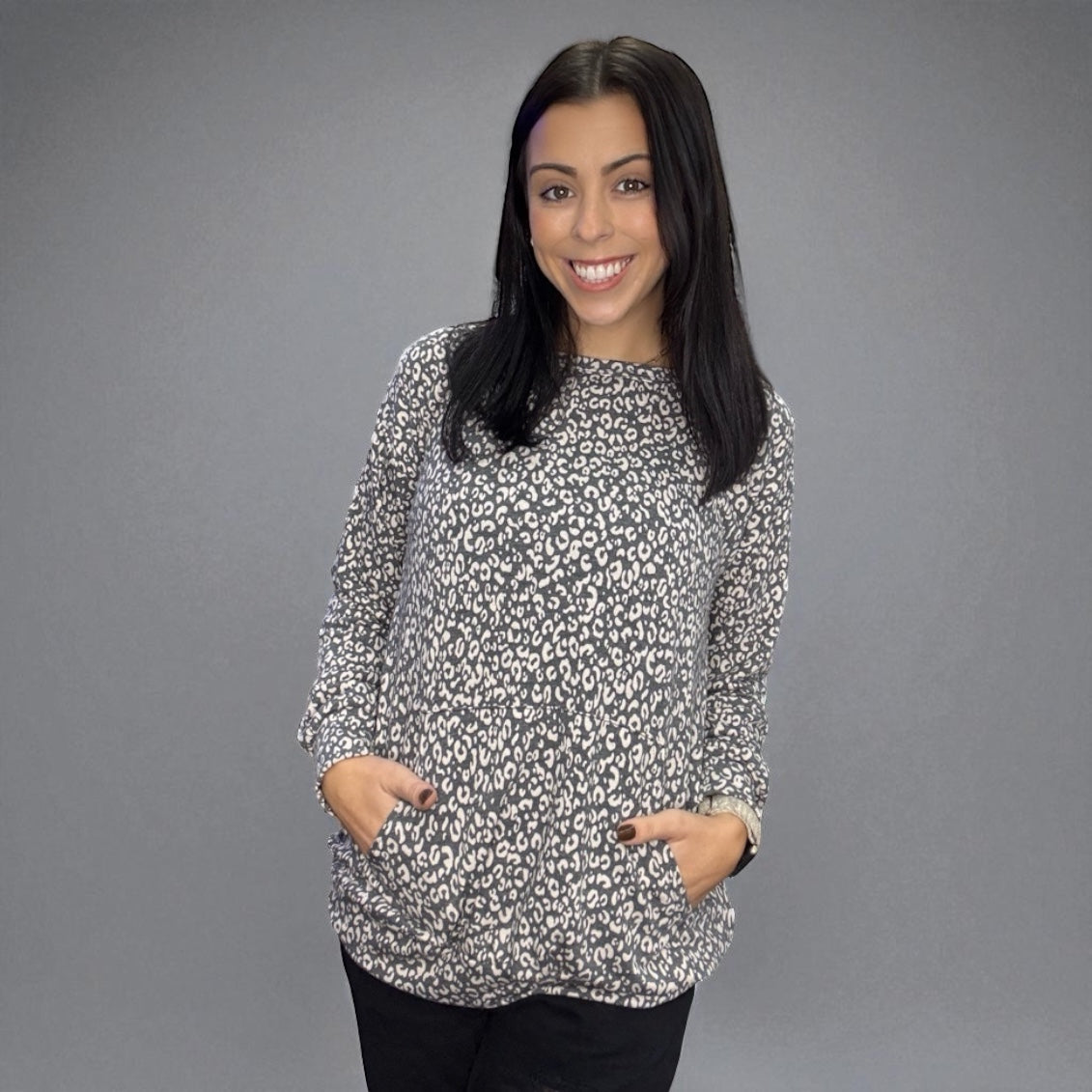 Stay cozy and stylish with our Brushed Jordan Pullover! Made from a soft and comfortable brushed fabric, this pullover features a front pocket for added convenience and a flattering scoop neck. Perfect for lounging at home or running errands, this pullover is a must-have addition to your wardrobe.